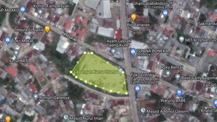 Lapangan yang berada di Jalan Durian, Kelurahan Dulalowo, Kota Tengah, Kota Gorontalo memang jika dihitung menggunakan google maps, luasnya sekitar 4 ribu meter persegi.