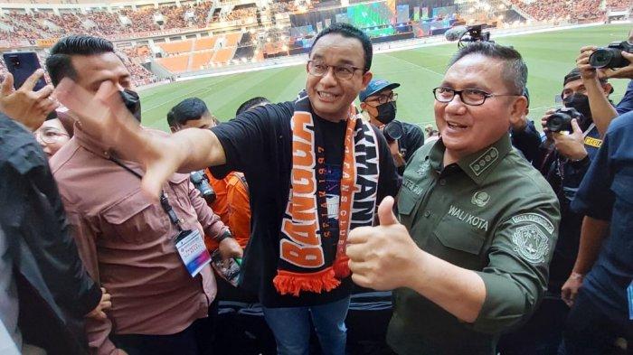 Wali Kota Gorontalo Marten Taha dan Gubernur DKI Jakarta Anies Baswedan terlihat akrab saat peresmian Jakarta Internasional Stadium (JIS) pada Minggu 24 Juli 2022.