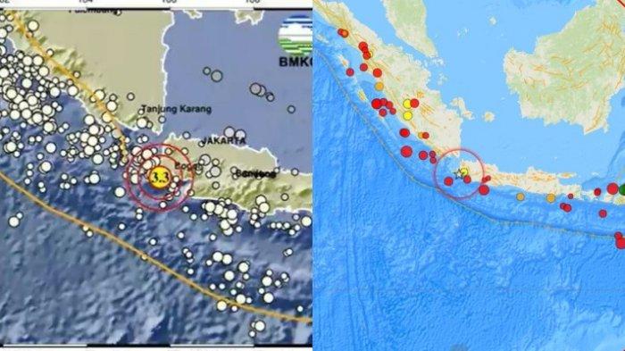 Lokasi gempa bumi berada di titik : 6.93LS, 105.76BT atau berjarak 16 kilometer Barat Daya Muara Binuangeun, Provinsi Banten