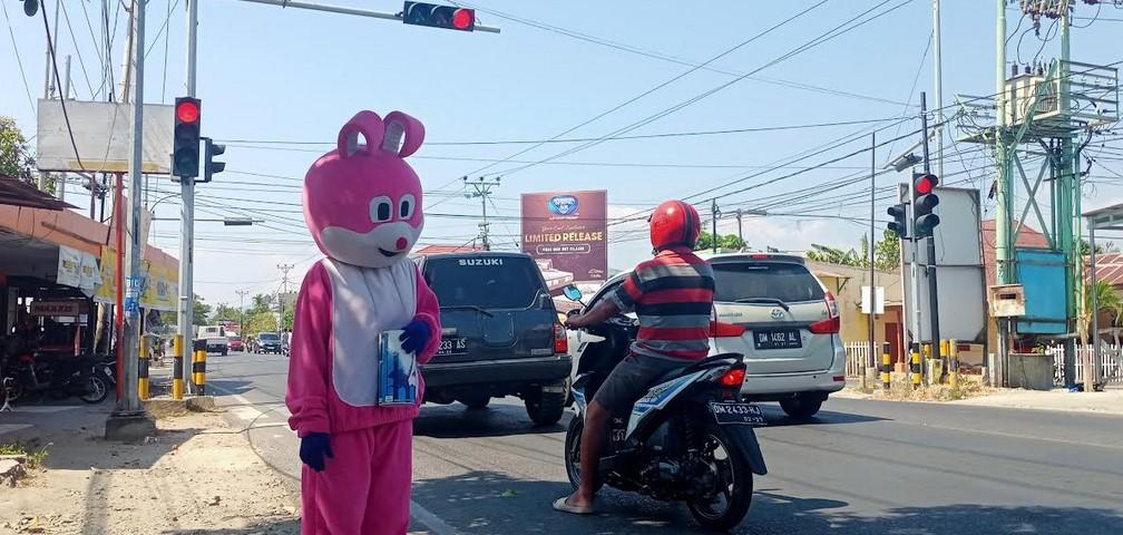 Di Kabupaten Gorontalo keberadaan badut jalanan terpantau di simpang empat Desa Pantungo, Kecamatan Telaga Biru.
