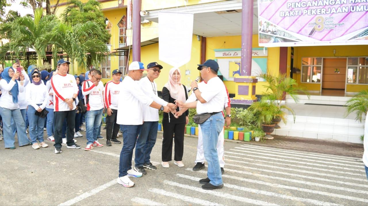 Pencanangan hari bakti ke-78 PU dan hari ulang tahun ke-23 Provinsi Gorontalo diawali dengan jalan sehat, senam bersama dan untuk memeriahkan kegiatan tersebut.