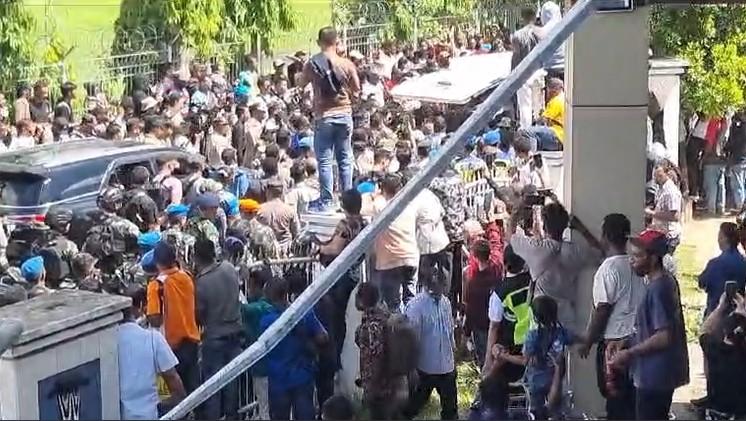 Massa yang mengantar kepergian Lukas Enembe sempat melempar batu ke sejumlah bangunan dan aparat keamanan.