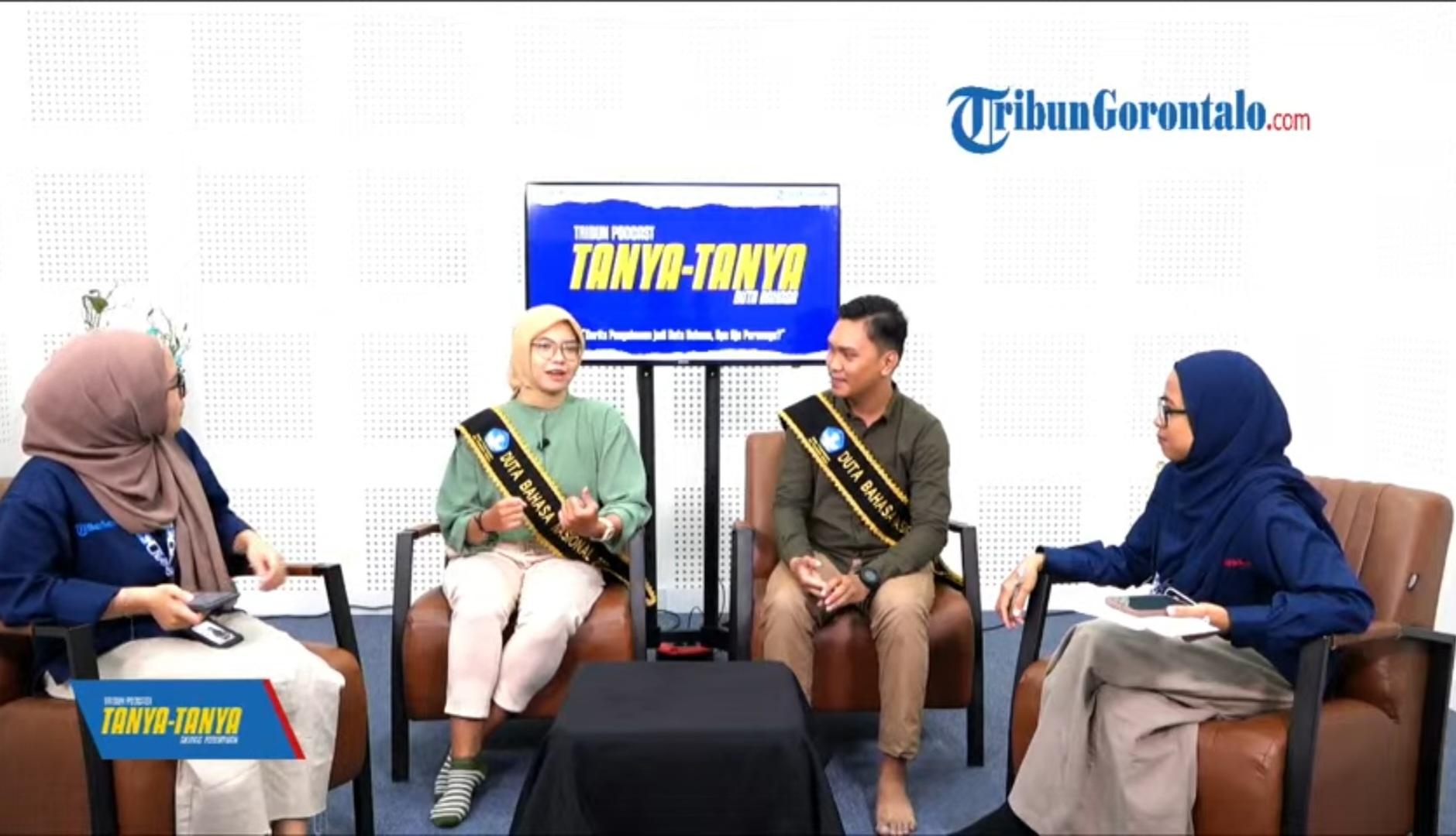Agum Prestiawan Tubuon dan Muly Nursia Abdjul bercerita pengalaman jadi Duta Bahasa Provinsi Gorontalo.