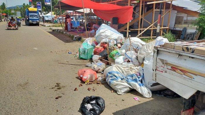 TRIBUNGORONTALO.COM, Boalemo -- Sampah menumpuk di Jalan Trans Sulawesi depan Pasar Tradisional Tilamuta, Kabupaten Boalemo, Provinsi Gorontalo, Kamis 18 April 2024.