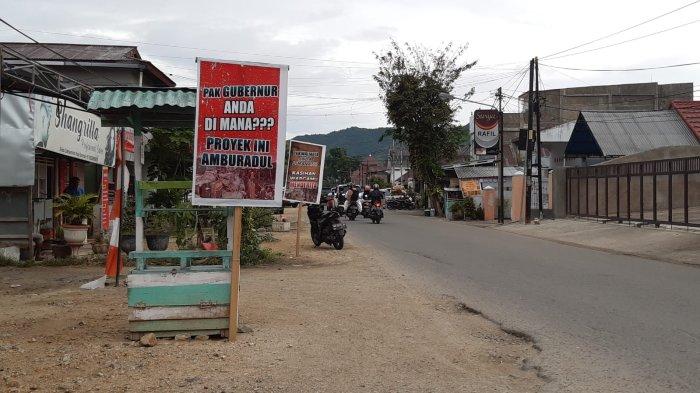 "Pak Gubernur, Anda di mana??? Proyek ini amburadul," tulis salah satu baliho, seperti yang dilihat TribunGorontalo.com, Kamis (13/6/2024).