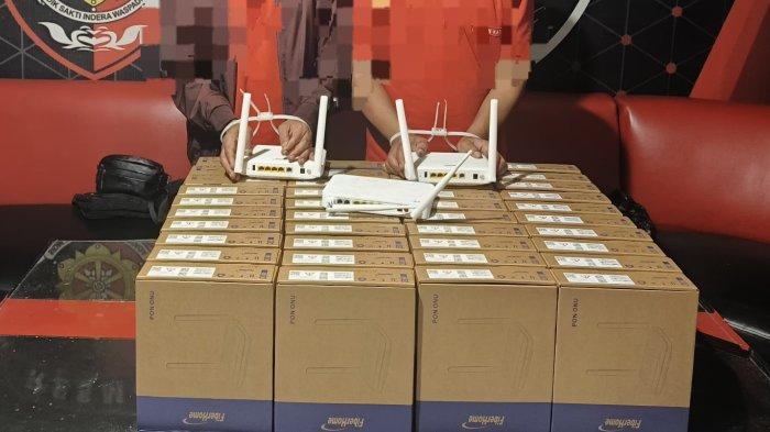 Lebih lanjut, setelah interogasi dilakukan, tim berhasil menemukan dan mengamankan barang bukti berupa 43 unit modem/ONT Fiber Home yang telah dijual oleh tersangka pelaku.