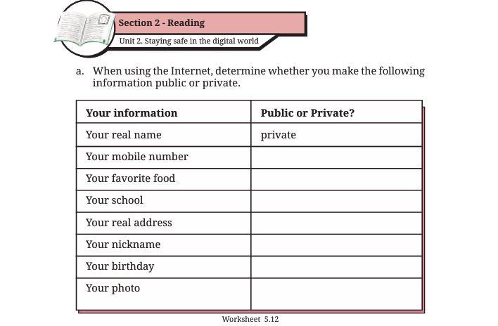 Section 2 - Reading Unit 2. Staying safe in the digital world