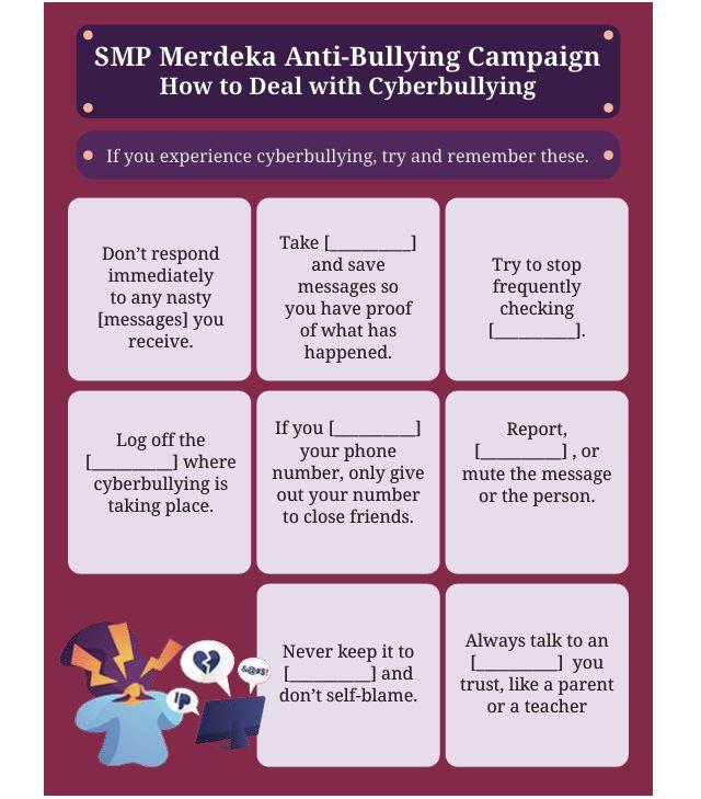 Di Worksheet 5.19 tersebut siswa diminta melengkapi kalimat tentang cyberbullying.