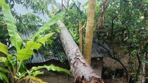 Angin kencang yang melanda Kecamatan Mananggu, Kabupaten Boalemo, menyebabkan dua rumah tertimpa pohon kelapa.
