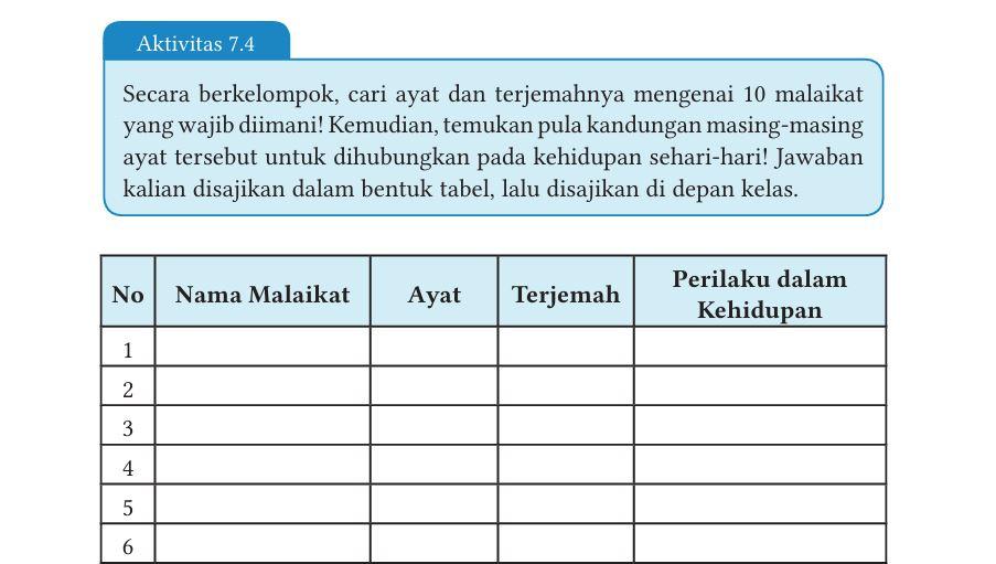 Kunci Jawaban PAI Kelas 7 Halaman 161 Kurikulum Merdeka: Aktivitas 7.4, Ayat tentang 10 Malaikat